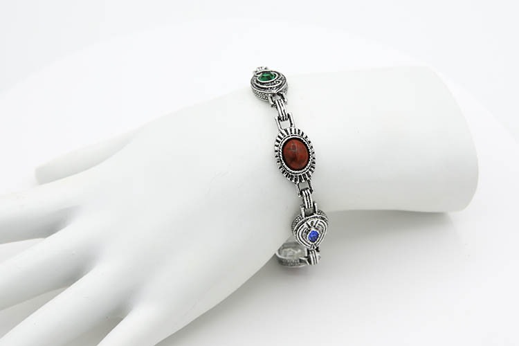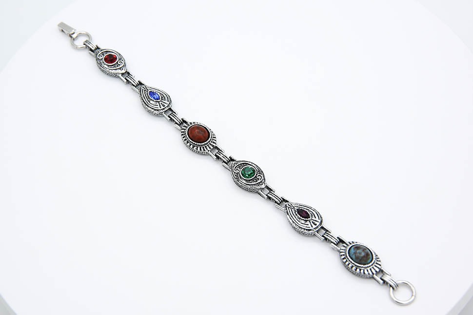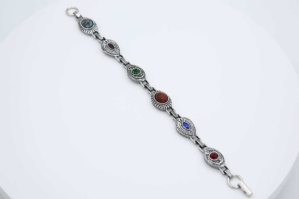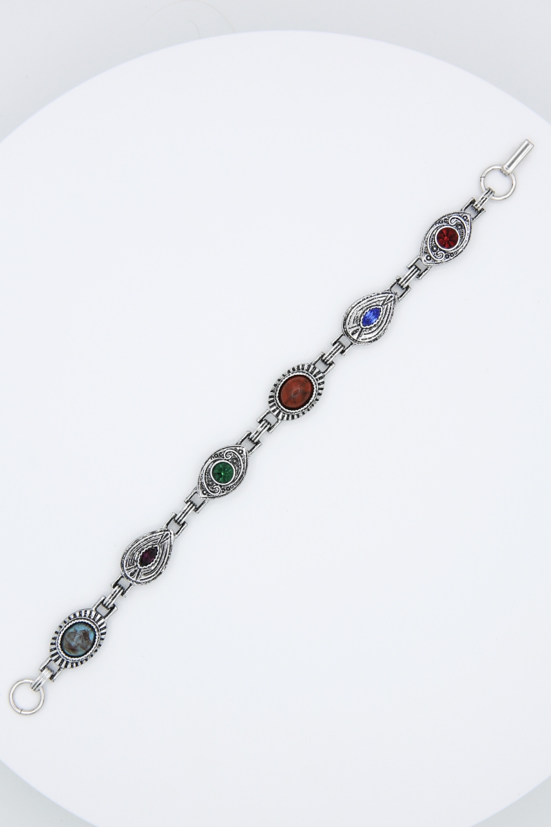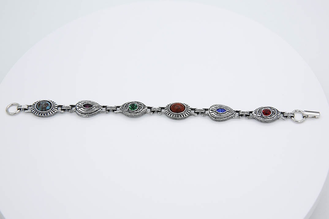 1976 Fascination Bracelet. Silver tone bracelet with different types and colors of stones in various settings.